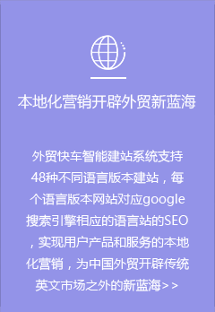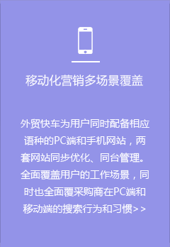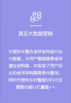 外貿(mào)快車是基于大數(shù)據(jù)和云計(jì)算的智能網(wǎng)絡(luò)營銷系統(tǒng)平臺。依托五大功能系統(tǒng),幫助外貿(mào)企業(yè)智能創(chuàng)建多語種營銷型網(wǎng)站和先進(jìn)的VR展示網(wǎng)站,通過采購商數(shù)據(jù)挖掘,以及SEO、SNS等多渠道網(wǎng)絡(luò)營銷,實(shí)現(xiàn)全球推廣和新興市場開發(fā)。